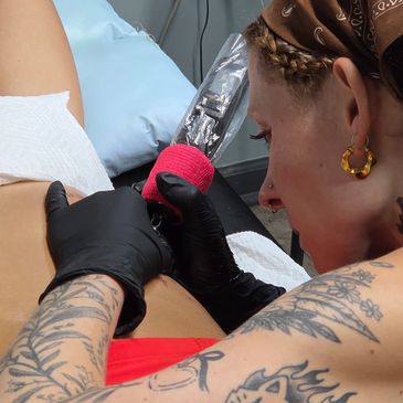 Using the finer skills gained from detailed work and a background in art and painting, Lex is a Traditional Tattooer. In her spare time, Lex paints flash and commission work with a plethora of mediums. Lex apprenticed under Dave Casper in 2021 after completing a previous career in Cosmetic Ta