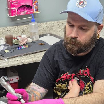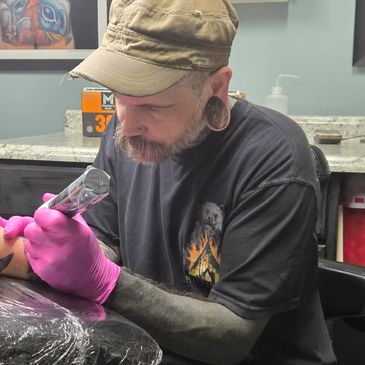 Dos has lived in Lynchburg since 2018. He is one of our senior artists and began tattooing in 2005, but his interest in art spans his entire life. He has a unique style all his own, but he loves a challenge. Dos has a particular affinity for cover-ups and reworks.