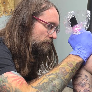 Jonn is from Iowa originally, and has lived in Lynchburg for over ten years. He is one of our senior artists has been tattooing since 2012, and considers himself a neo-traditional and ornamental style artist.