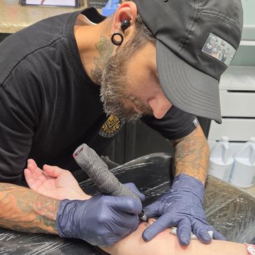 Garrett Langley started his tattoo career in Lynchburg at Infinity Tattoo, where he apprenticed under Aaron Moodie. He is one of our senior artists and has always loved art and has been drawing and painting for years. There are many styles of tattooing that inspire him, but realism is what draws him the most.